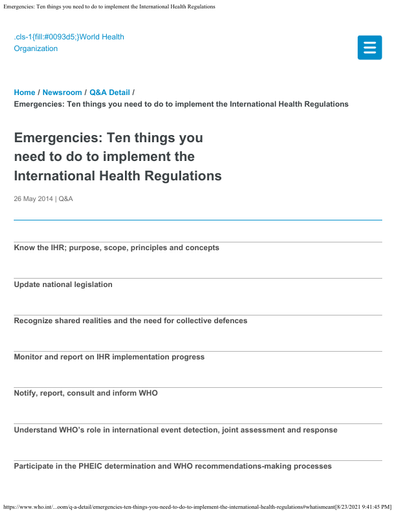This document focuses on the laboratory component of IHR. It can be used in identifying approaches to develop the laboratory capacity for implementation of IHR in the WHO African Region in accordance with the specifications outlined in Annex 1A of IHR. Since IHR does not provide clear guidance on the laboratory component, this document will define specific elements for laboratory capacity requirements to facilitate the monitoring and evaluation of the implementation of IHR, and also will supplement existing WHO reference documents.