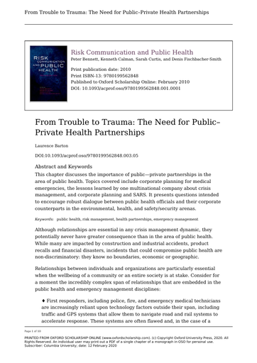 This article examines the role that risk, and especially the perception and communication of risk played in driving the economic impact of 2003 SARS outbreak.