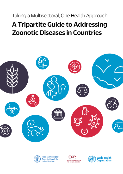 The Tripartite Zoonoses Guide (TZG) has been jointly developed by the FAO, OIE, and WHO to support countries in taking a multisectoral, One Health approach to address zoonotic diseases. It provides principles, best practices and options to assist countries in achieving sustainable and functional collaboration at the human-animal-environment interface.