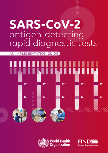 This guide provides an overview of the major elements that must be considered before, during and after the implementation of antigen-detecting rapid diagnostic tests (Ag-RDTs) for SARS-CoV-2. This guide is complementary to policy guidance issued by the World Health Organization (WHO). The guide may appeal to a range of audiences including Ministries of Health, donors, public and private organizations/agencies acting as implementing partners and community based and civil society organizations with experience working on health, especially organizations familiar with similar testing campaigns for other disease programs like HIV and malaria.