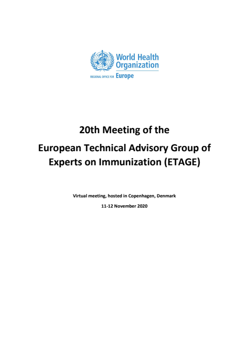 20th meeting of the European Technical Advisory Group of Experts on Immunization (ETAGE): virtual meeting, hosted in Copenhagen, Denmark, 11-12 November 2020