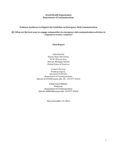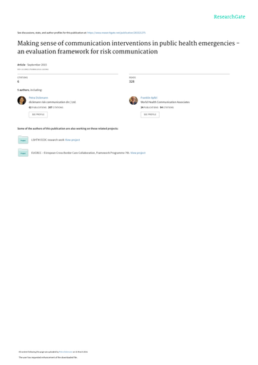 Making sense of communication interventions in public health emergencies – an evaluation framework for risk communication.