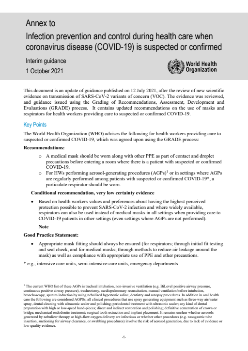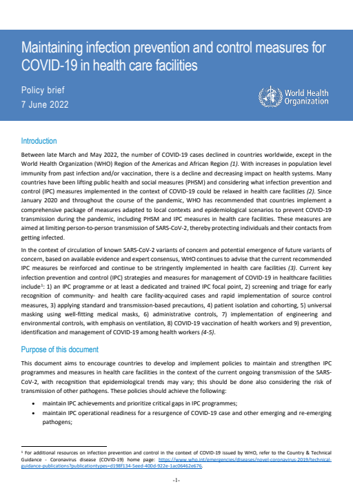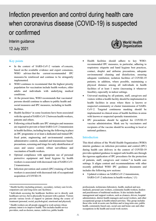 The minimum requirements are defined as: IPC standards that should be in place at the national and facility level to provide minimum protection and safety to patients, HCWs and visitors, based on the WHO core components for IPC programmes.
