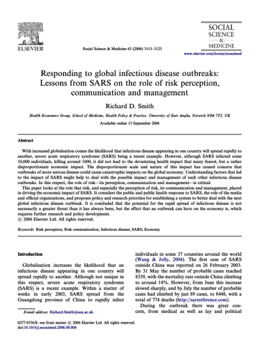 Responding to global infectious disease outbreaks: lessons from SARS on the role of risk perception, communication and management