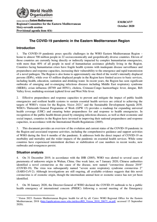 The COVID-19 pandemic in the Eastern Mediterranean Region