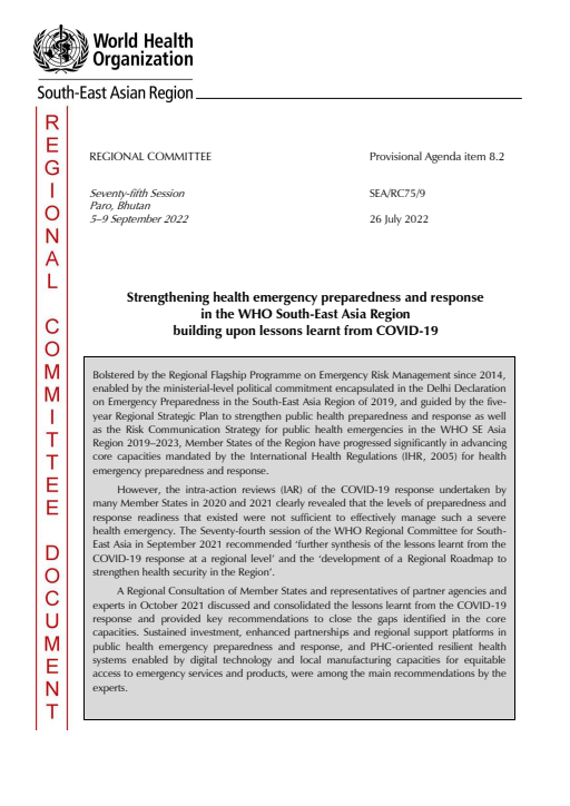 This document will assist our Member States in their efforts to establish and strengthen public health laboratories and forge their network in pursuit of preventing and containing emerging, re-emerging and novel communicable diseases in the South-East Asia Region.