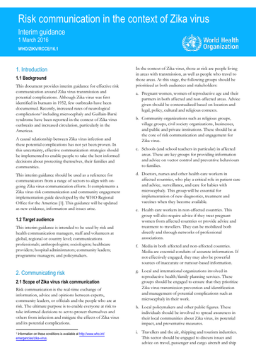 This document is an example of interim guidance for effective risk communication for Zika virus transmission and potential complications from infection.