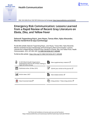 This rapid review focuses exclusively on gray literature and seeks to identify the lessons learned from recent Ebola, Zika, and yellow fever to improve emergency risk communication.