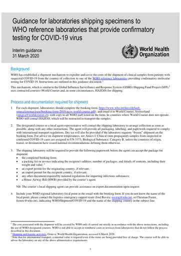Guidance for laboratories shipping specimens to WHO reference laboratories that provide confirmatory testing for COVID-19 virus