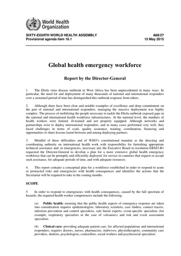 and approaches across the organization. It describes how exercise teams work, and can supplement future training courses for WHO staff, ministries of health, governments, and preparedness and response partners.